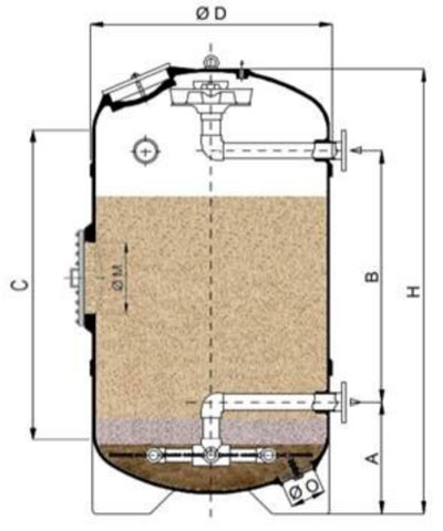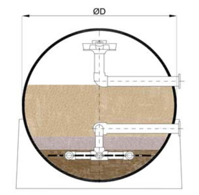 Под низкой загрузкой понимается общая высота фильтрующей загрузки до 1000мм. Эти фильтры используются, в основном, в системах ирригации или при ограниченном бюджете. Вода будет лучше распределяться по поверхности и в результате, и фильтрация будет проходить более эффективно, и промывка будет гораздо лучше, чем в горизонтальном фильтре. С помощью коллекторной распределительной системы не используется воздух для обратной промывки в помощь к воде.