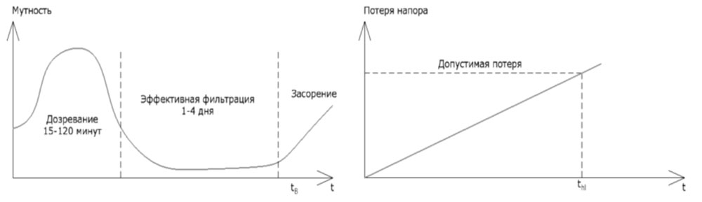 • Потеря напора на фильтре со временем возрастает, по мере того, как он зарастает и уменьшается его гидравлическая проницаемость.