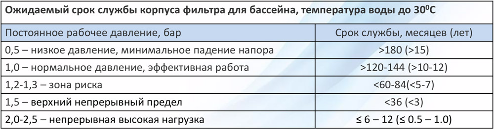 На практике долговечность фильтров сильно зависит от постоянного рабочего давления, не смотря на декларируемые сроки гарантии на корпус фильтра.