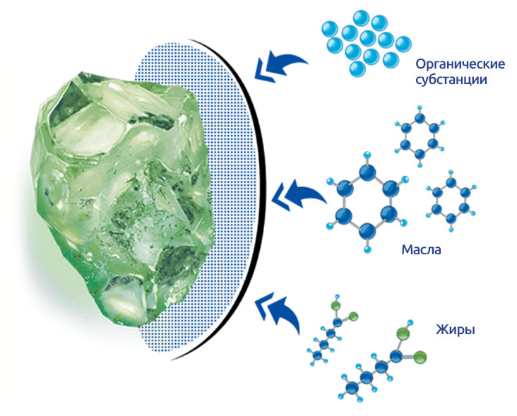 Химические свойства стекла, форма зерен и прежде всего процесс активации придают AFM эти выдающиеся качества, которые однозначно превосходят кварцевый и стеклянный песок. Большая площадь поверхности имеет сильный отрицательный заряд для адсорбирования органики и мелких частиц. Поверхность также имеет катализаторы в виде оксидов металлов, которые производят свободные радикалы и таким образом повышают редокс-потенциал. Поэтому AFM сам себя дезинфицирует и препятствует образованию колоний бактерий, что делает этот материал уникальным, биоустойчивым наполнителем для фильтров.