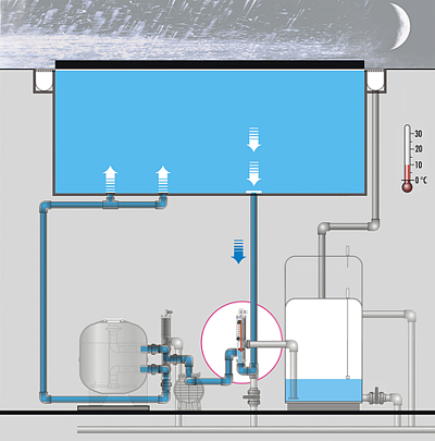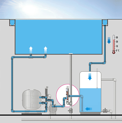 Меньше потери температуры в течение ночи или холодных дней с уменьшением испарения от переливного лотка => меньше издержки на отопление (до 50%)